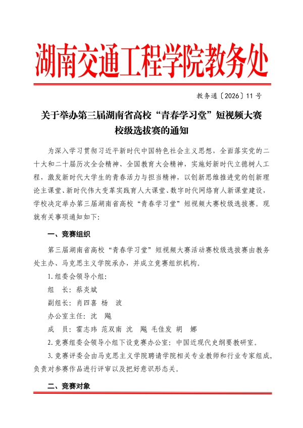 关于举办第三届湖南省高校“青春学习堂”短视频大赛校级选拔赛的通知