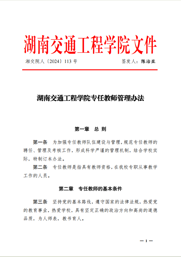 湘交院人〔2024〕113号(18新利在线登陆 专任教师管理办法)