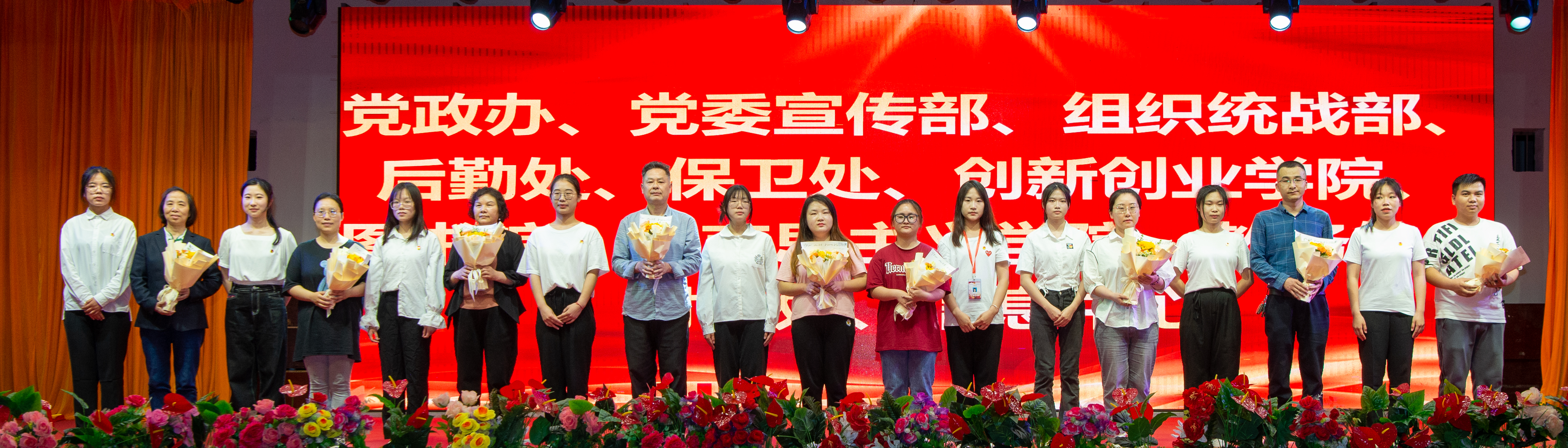晚会分为 “致青春,致未来,奋斗的青春”“加强组织建设,筑牢坚强战斗堡垒”“汲取榜样力量,发挥先锋模范作用”“社团涌聚风采,青春激扬时代旋律”“有幸遇良师,青春路繁花”“怀着感恩之心,励志前行”“团学干部作表率,决胜合格评估”等七个篇章。节目精彩纷呈现场气氛热烈。其间,与会领导分批穿插为获得表彰的先进集体和个人代表颁奖。
