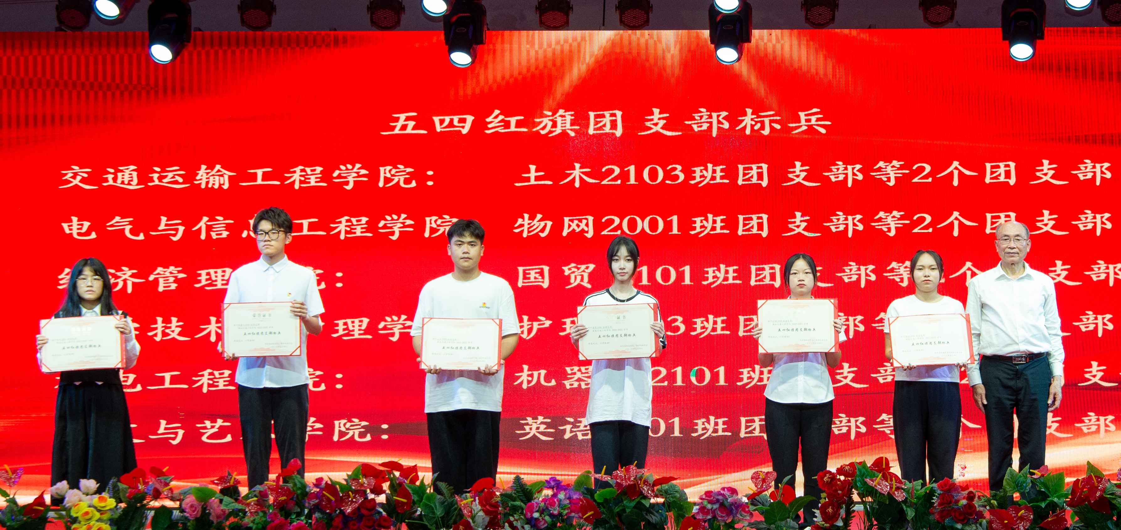 本网讯(记者 赵红深 摄影 奉隆源为大力弘扬五四精神,展现“交院”青春风采,5月4日晚 ,学校在大学生活动中心隆重举行以“青春践行二十大,  凝心聚力迎评估,  勇毅前行谱新篇”2023年“五四”表彰大会。共青团衡阳市书记王致伟莅临大会指导并讲话,校党委书记刘文君、党委副书记李先聪、副校长余孟辉出席会议, 学校相关职能处室负责人,各二级学院党总支书记、副书记、团总支书记、全体辅导员,获奖集体及学生代表等2000余人参加大会。