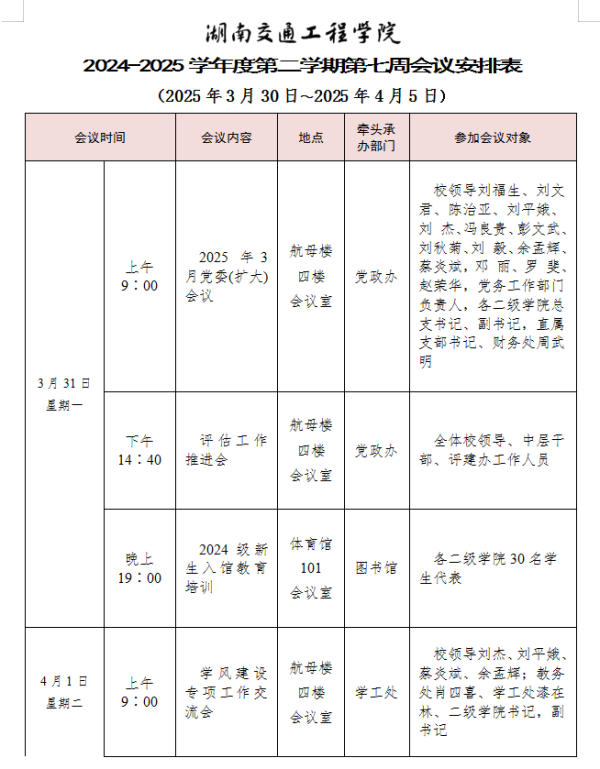 18新利在线登陆 2024-2025学年度第二学期第七周会议安排表