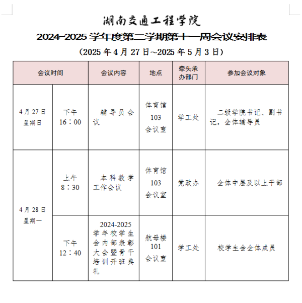 18新利在线登陆 2024-2025学年度第二学期第十一周会议安排表