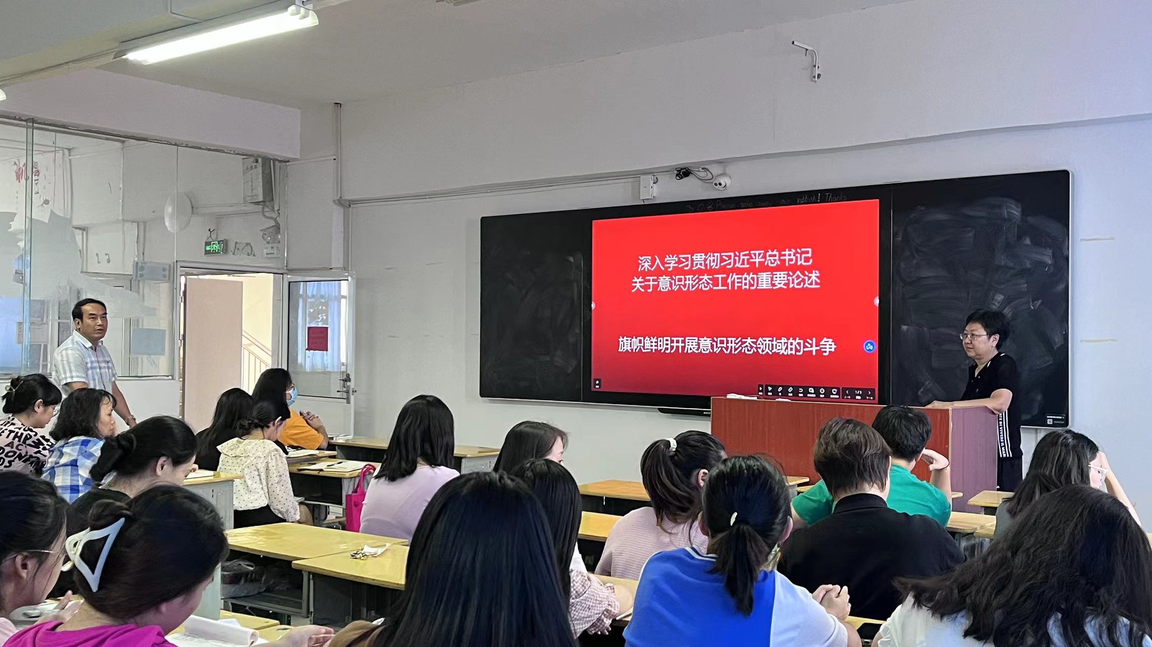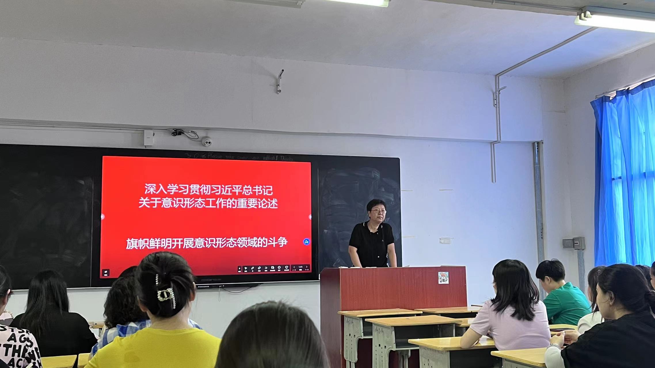 党总支书记刘敏芝强调:我们要认真贯彻落实习近平总书记的关于高校思想政治工作和意识形态工作相关重要论述精神,正视我们的党员身份,珍惜我们的党员身份,争做党员标杆,思想不懈怠,学习不懈怠,做好模范带头作用,管好嘴,管好手,管好笔,做好正能量宣传;党员师生们要做到完成任务不马虎,阵地管理不懈怠,责任追究不含糊。