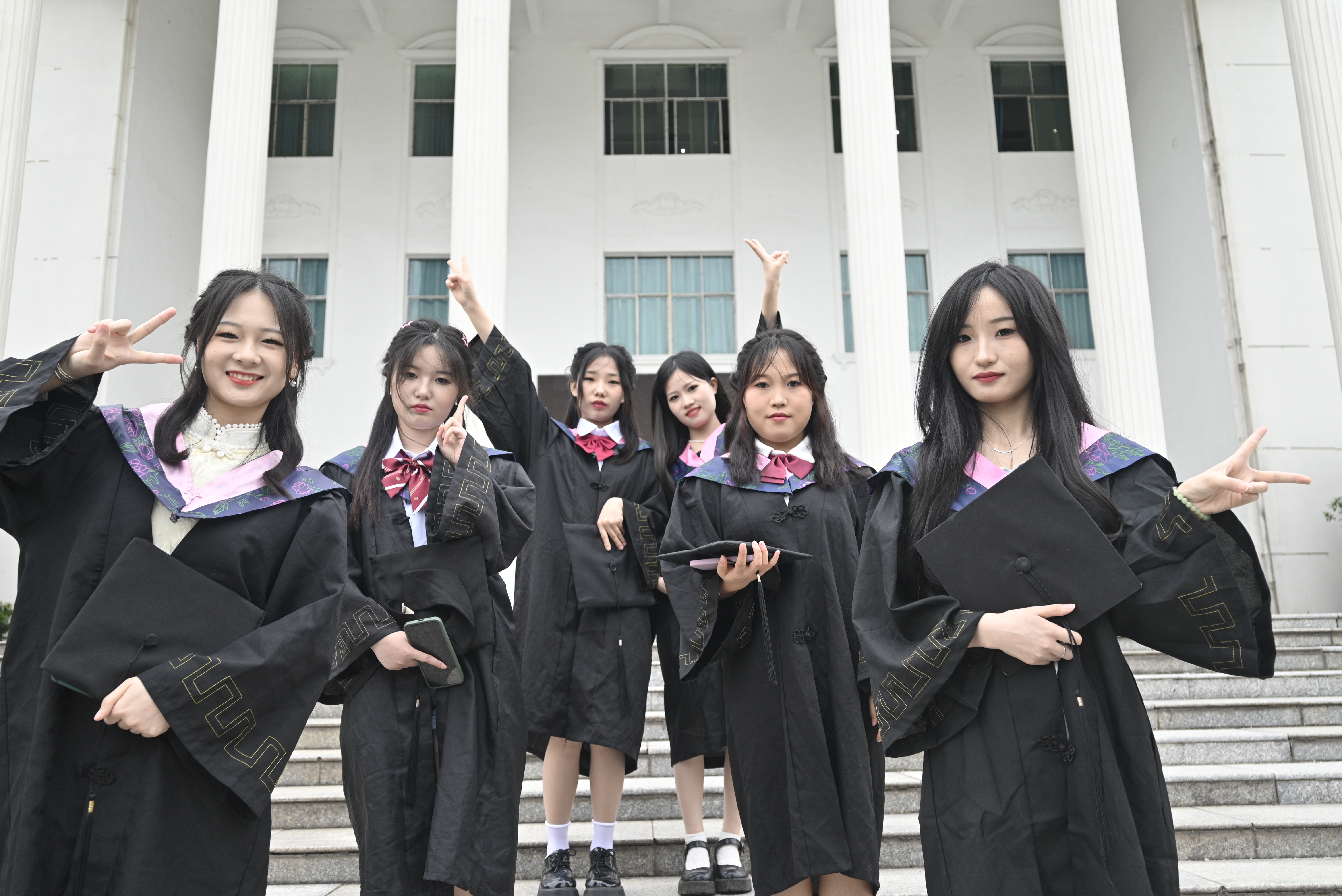 人文与艺术学院音乐表演专业刘心雨告诉笔者,“毕业是一个结束,但也是一个开始,为怎样拍好毕业照这事,大伙谈论了很久,校园里不仅留下了大家的青春回忆,还记录了我们6人之间最珍贵的姐妹情,这组毕业照将成为我们的闺蜜照。”