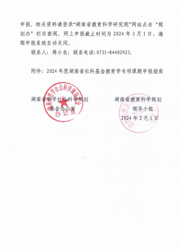 关于做好2024年度湖南省社科基金教育学专项课题申报工作的通知