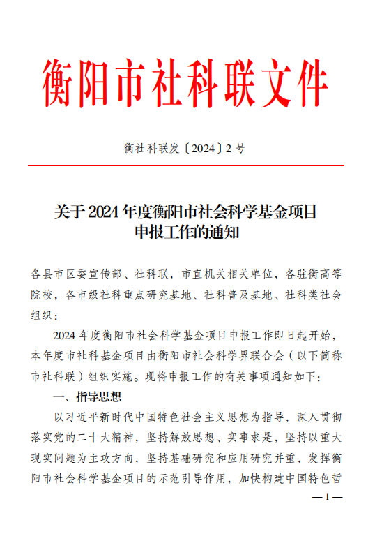 关于2024年度衡阳市社会科学基金项目申报工作的通知