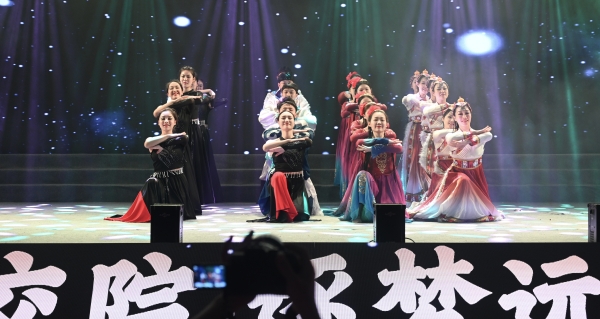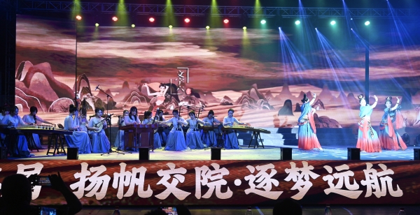 葛龙、李玲丽、朱绎璇、周珂乐老师指导的乐舞《丝绸之路》, 吸取了弗拉明戈、探戈、踢踏舞等节奏元素,律动渐紧,音势渐浓,步步推进高潮,将生命、热情与梦想,幻化为丝绸之路上的长河日圆。今晚,我们在这里欢聚一堂,共祝祖国繁荣昌盛!共祝同学们前程似锦!