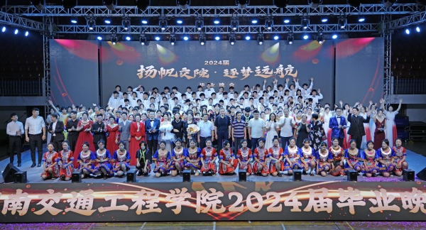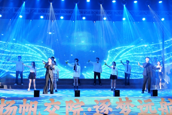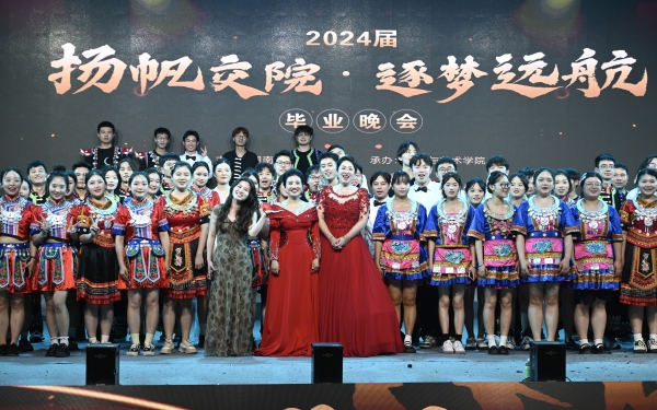 本网讯(记者 赵红深 摄影 赵红深 喻威)芳华今夏绽,岁月曲上圆。6月12日晚7点30分,由学校主办、人文与艺术学院承办的2024届毕业晚会“扬帆交院•逐梦远航”在学校体育馆倾情上演。校长陈治亚受邀出席并致辞;党委书记刘文君、执行校长刘杰、名誉校长刘平娥、常务副校长彭文武,副校长余孟辉、刘义伦,董事董晔卉等领导及各机关处室、各二级学院师生代表2000余人观看了本场演出。