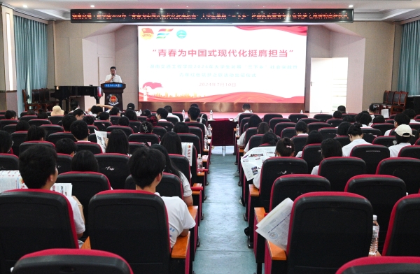 本网讯(记者 摄影 赵红深)7月10日上午,我校在航母楼101会议室举行2024年“青春为中国式现代化挺膺担当”大学生暑期“三下乡”社会实践暨青年红色筑梦之旅活动出征仪式,为即将走进基层学知识、走近群众长见识、走向一线作贡献的志愿者们壮行。党委书记刘文君、副校长余孟辉出席,学校相关职能部门负责人,各二级学院团总支书记、指导教师代表、社会实践队员150余人参加出征仪式。出征仪式由校团委书记漆在林主持。