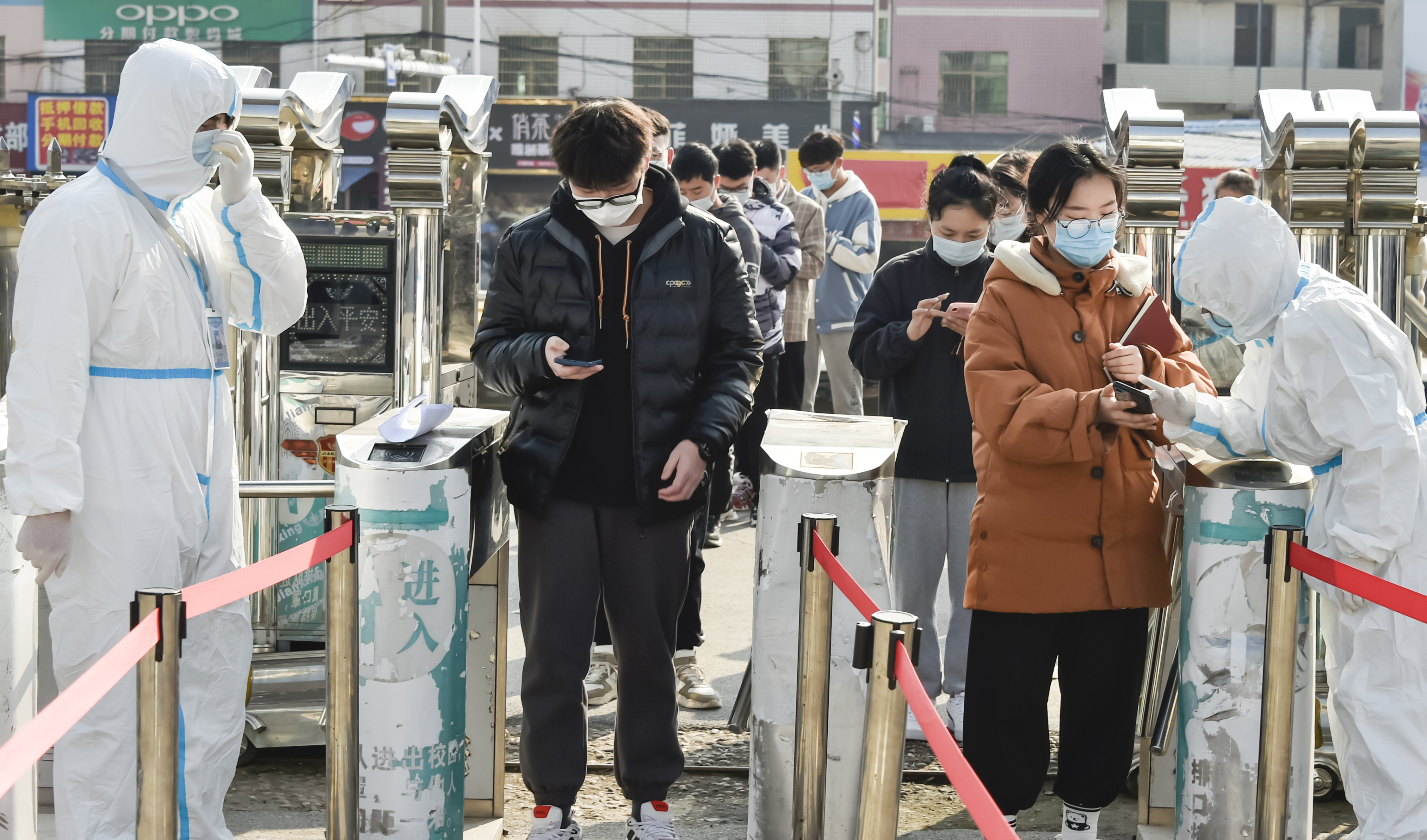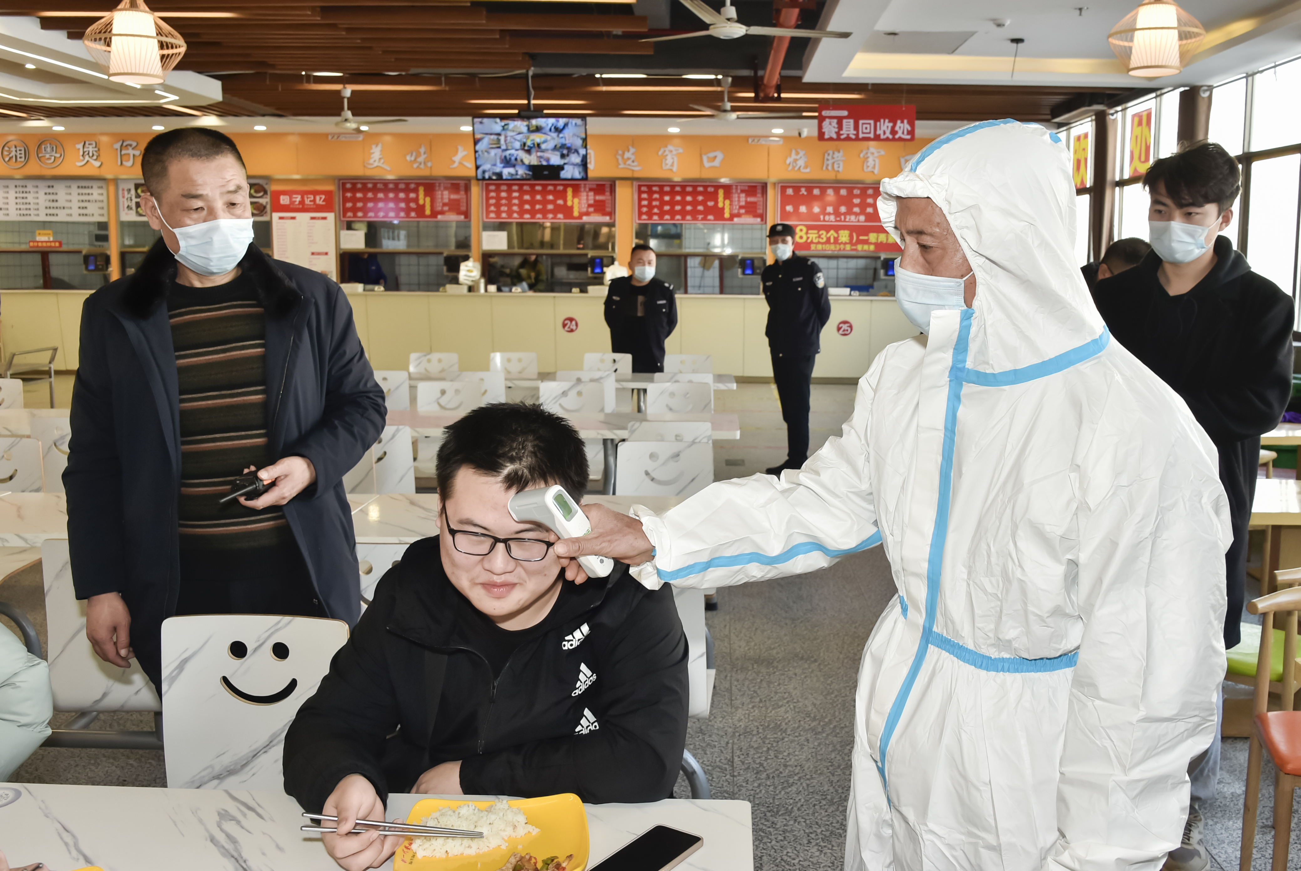▲ 15栋学生宿舍内检测学生体温