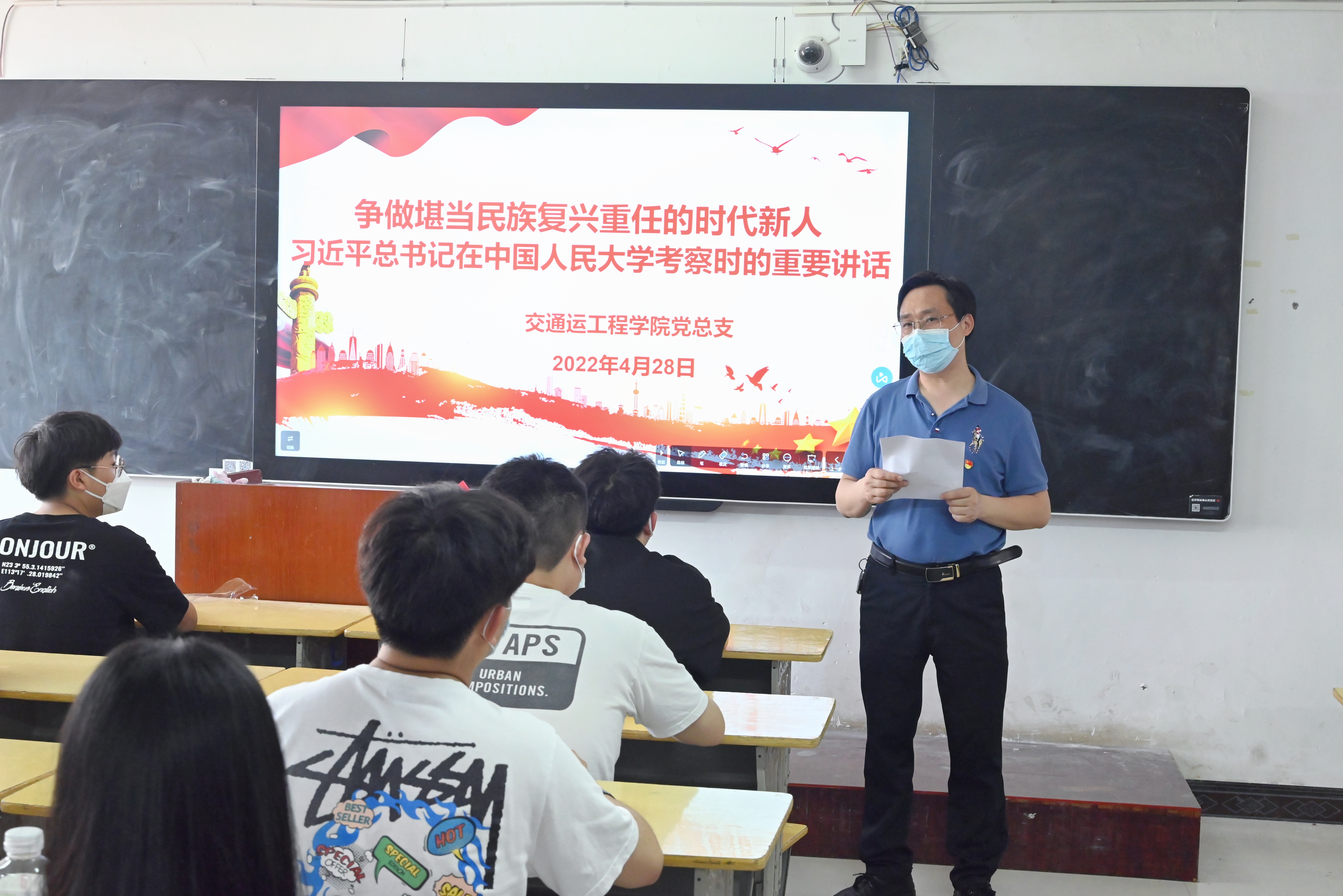 本网讯(通讯员  摄影 胡雅兰为了更好的学习习近平总书记在中国人民大学考察时的重要讲话,2022428日交通运输工程学院党总支组织全体在校党员以“争做堪当民族复兴重任的时代新人”为主题开展了一次党课学习活动,本次党课由交通运输工程学院党总支书记何美生主持。