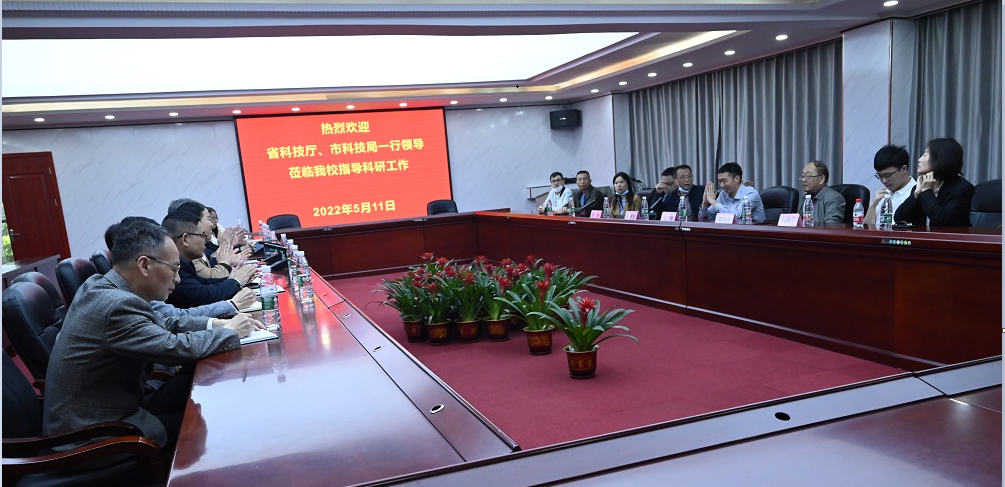 樊晓平对省市科技主管部门一行表示欢迎,对省科技厅、市科技局多年来给予我校科技工作的大力支持表示衷心的感谢。他简要介绍了我校的发展历程、二级学院设置、科研成果等。他表示,科技人才的引进和培养,是促进我校人才队伍建设,提高学校核心竞争力,实现“人才强校”战略,助力“双一流”建设的重要保障;如何促进学校科技创新能力、科技成果推广与转化,既是服务地方经济的重要体现,也是我校迎接本科教学工作合格评估建设的重要抓手。学校将以此为契机,扎实推进人才引进工作,全面提升科研能力和管理水平。
