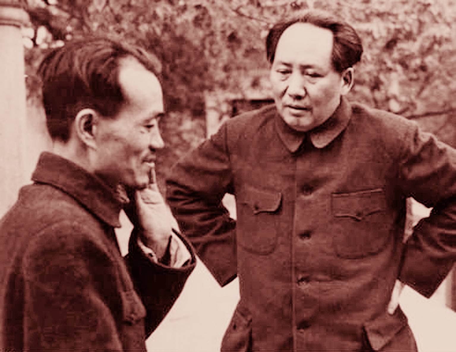 1949年4月,毛泽东与胡乔木在北平香山交谈