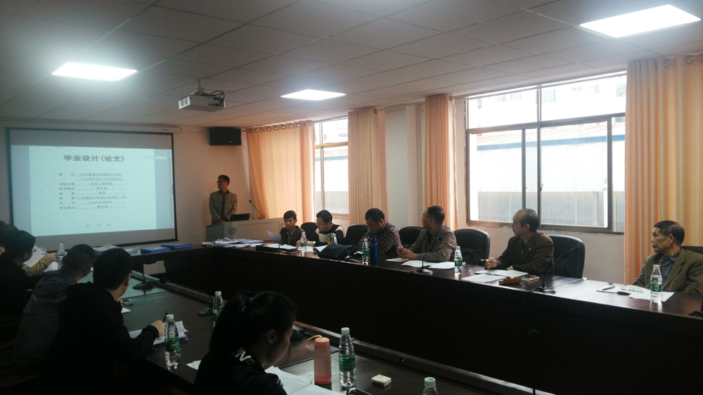 2018年4月24日,学校主管教学副校长陈善良、杨俊才,教务处处长李常应等一行来我院进行毕业设计中期检查,我院冯小康院长汇报了机械设计制造及其自动化专业毕业设计情况,罗斐书记汇报了汽车服务工程专业毕业设计情况,杨启正副院长汇报了机械电子工程专业毕业设计情况,各教研室主任分别作了汇报。检查组成员检查了毕业设计任务书、开题报告、毕业设计说明书、学生记录本等材料,并随机抽取了10余名学生进行现场汇报演说。此次检查,得到了检查组的高度评价,毕业设计选题合理,贴近实际并具有创新意识,指导老师安排合理,毕业设计说明书书写格式规范。