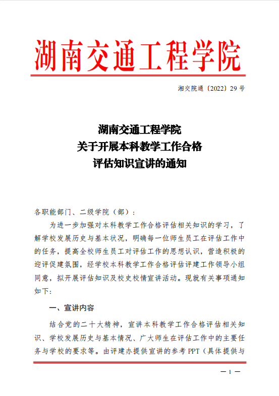 18新利在线登陆 关于开展本科教学工作合格 评估知识宣讲的通知