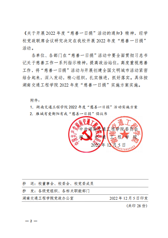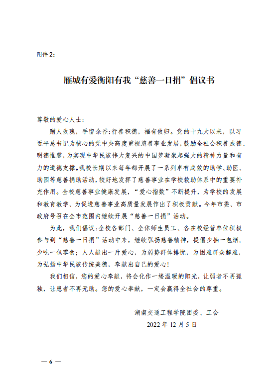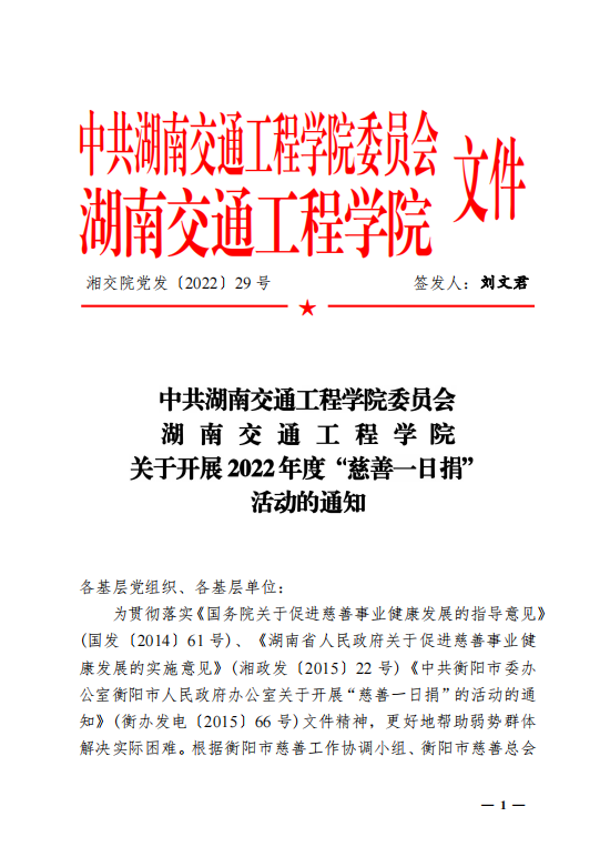 关于开展2022年度“慈善一日捐"活动的通知