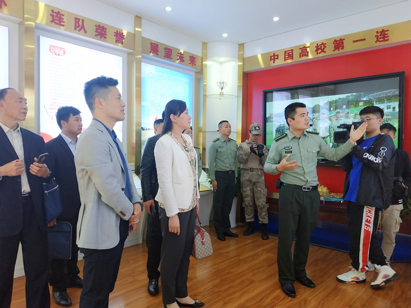 在湖南信息学院领导陪同下先后参观了聚智书院、兄弟连营区、学生公寓、健身房、图书馆等地。