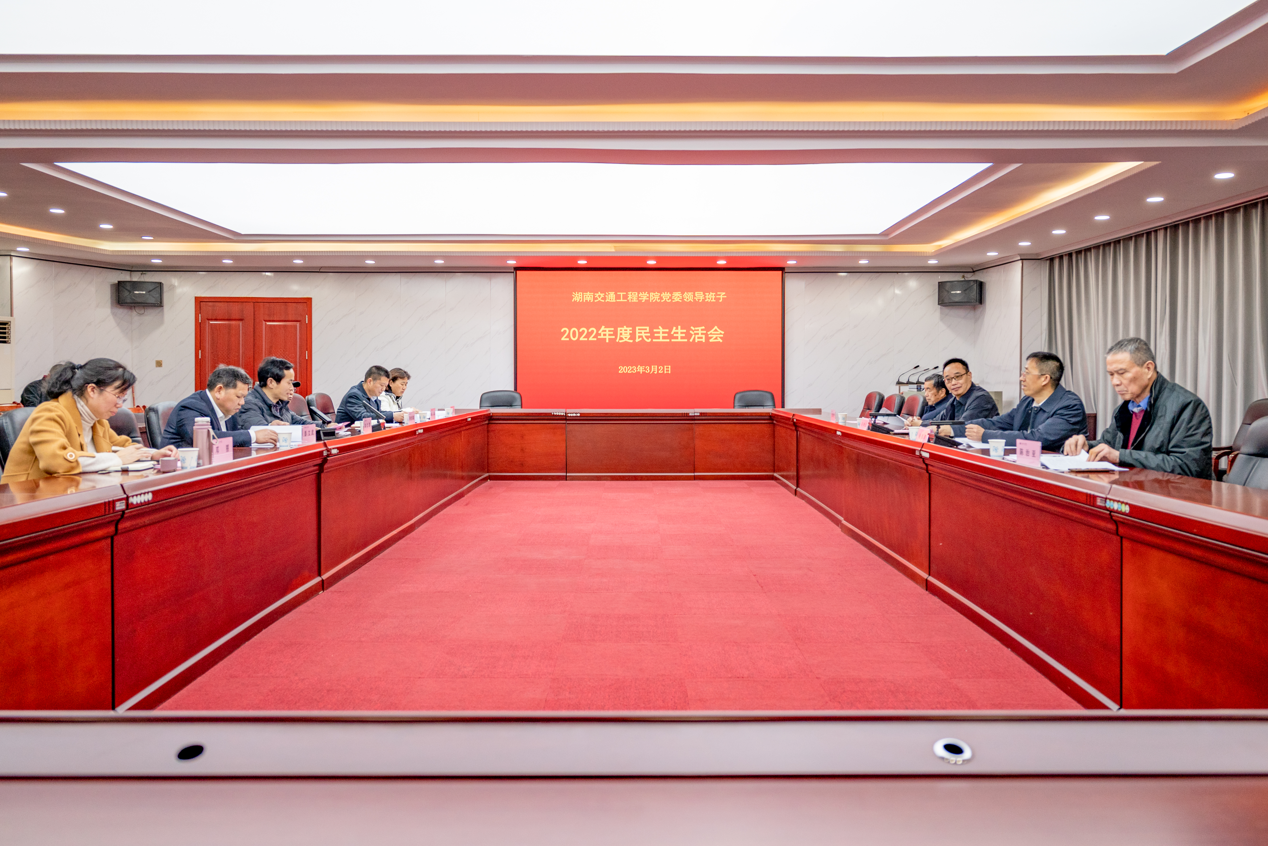 本网讯(记者 赵红深 摄影 奉隆源)按照省纪委、省委组织部和省委教育工委关于开好2022年度党员领导干部民主生活会的有关要求,3月2日下午,学校党委领导班子在体育馆103会议室召开2022年度民主生活会。会议围绕“全面贯彻习近平新时代中国特色社会主义思想,深刻领悟‘两个确立’的决定性意义,增强‘四个意识’、坚定‘四个自信’、做到‘两个维护’,团结带领党员干部群众以奋发有为的精神贯彻落实党的二十大作出的重要决策部署”这一主题,紧扣工作实际,深入进行自我检查、党性分析,认真检视问题和不足,严肃开展批评与自我批评,进一步把思想和行动统一到党的二十大精神上来。市教育局组织人事科科长高坤云、衡阳市民办教育行业党委专职副书记周崇玖到会指导,董事长刘福生、校长陈治亚应邀参加。