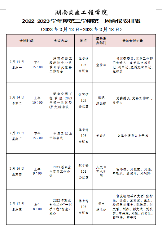 18新利在线登陆 2022-2023学年度第二学期第一周会议安排表