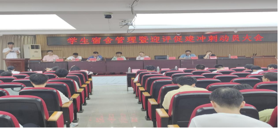 为了迎接即将到来的本科教学合格性评估,充分调动师生员工的迎评热情,2023年5月5日晚上7:00,6栋宿舍管理委员会在体育馆101会议室召开了本栋学生宿舍内务整理暨迎评促建动员大会,此次会议由6栋轮值栋长曹亮明老师主持,副校长余孟辉、机电学院党总支书记罗斐书记、电气与信息工程学院党总支书记刘忠明书记、6栋学业辅导员、社区辅导员和6栋全体学生出席了会议。