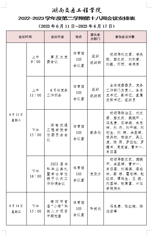 18新利在线登陆 2022-2023学年度第二学期第十七周会议安排表