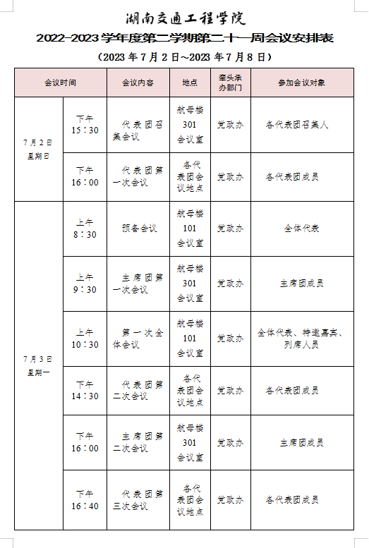 18新利在线登陆 2022-2023学年度第二学期第二十一周会议安排表