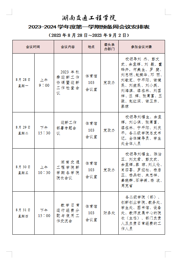 18新利在线登陆 2023-2024学年度第一学期预备周会议安排表