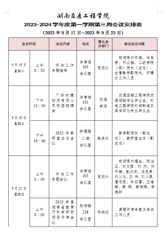 18新利在线登陆 2023-2024学年度第一学期第三周会议安排表