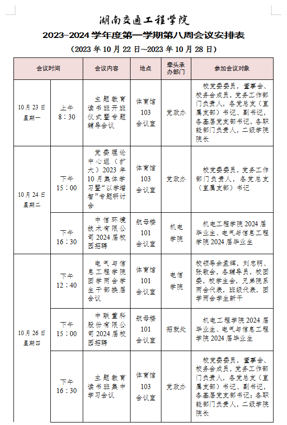 18新利在线登陆 2023-2024学年度第一学期第八周会议安排表