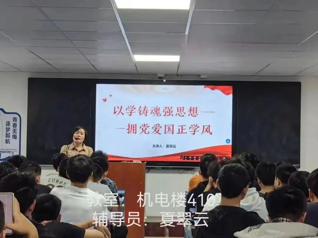 以学铸魂,就是要做好学习贯彻新时代中国特色社会主义思想的深化、内化、转化工作,从思想上正本清源、固本培元,筑牢信仰之基、补足精神之钙、把稳思想之舵。”习近平总书记近日在广东考察时就“以学铸魂”作出深刻阐释,提出明确要求。在青春有限的时光里,每个人都有自己的远大理想,唯有坚韧不拔的毅力,勇往直前的奋斗态度,才能到达顶峰。为此,于10月15日18新利在线登陆 机电工程学院的各班辅导员在班上开展"以学铸魂”主题班会活动。
