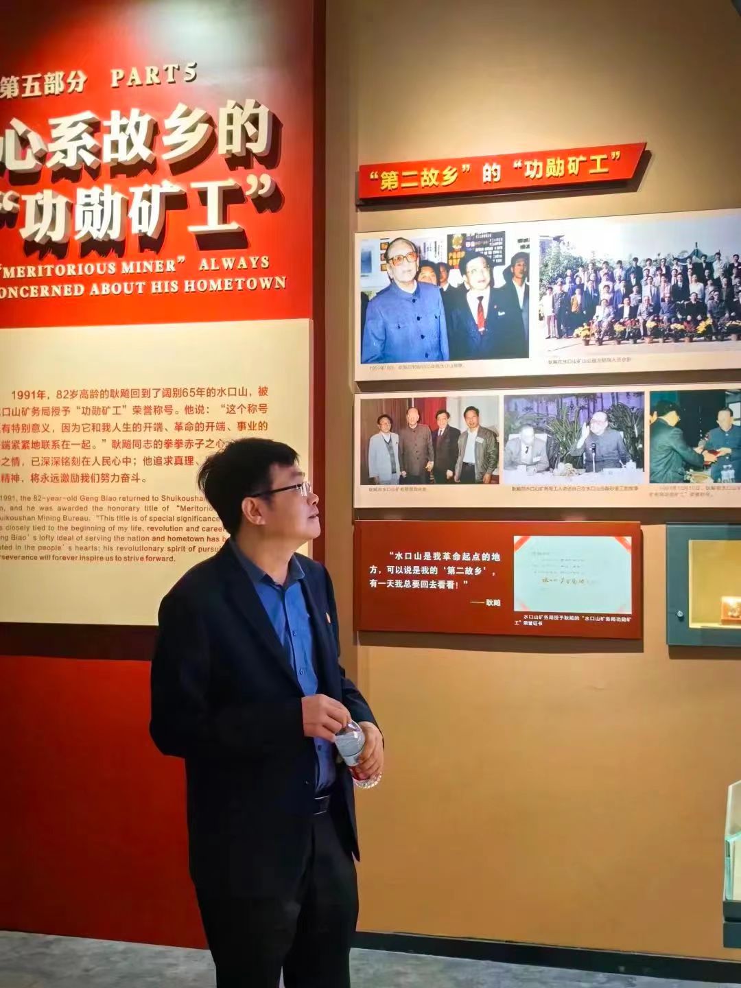 首先,党员们在党总支书记罗斐、副书记刘建军以及学生党支部书记夏翠云的带领下先后参观了“水口山工人运动史陈列、耿飚生平业绩陈列、水口山矿冶史陈列”等3个陈列馆。大家认真仔细看图文。馆内陈列的一件件陈旧的革命遗物、一张张记录峥嵘岁月的图片,一桩桩感人至深的往事,一册册泛黄的革命书籍,让党员们深刻感受到在中国共产党的坚强领导下,水口山工人开展罢工斗争、农民运动和武装斗争时不屈不挠、砥砺奋进的革命斗争精神,大家仿佛置身于水口山工人运动的历史画卷中,沉浸式感受水口山工人运动的光辉历史和宝贵精神。
