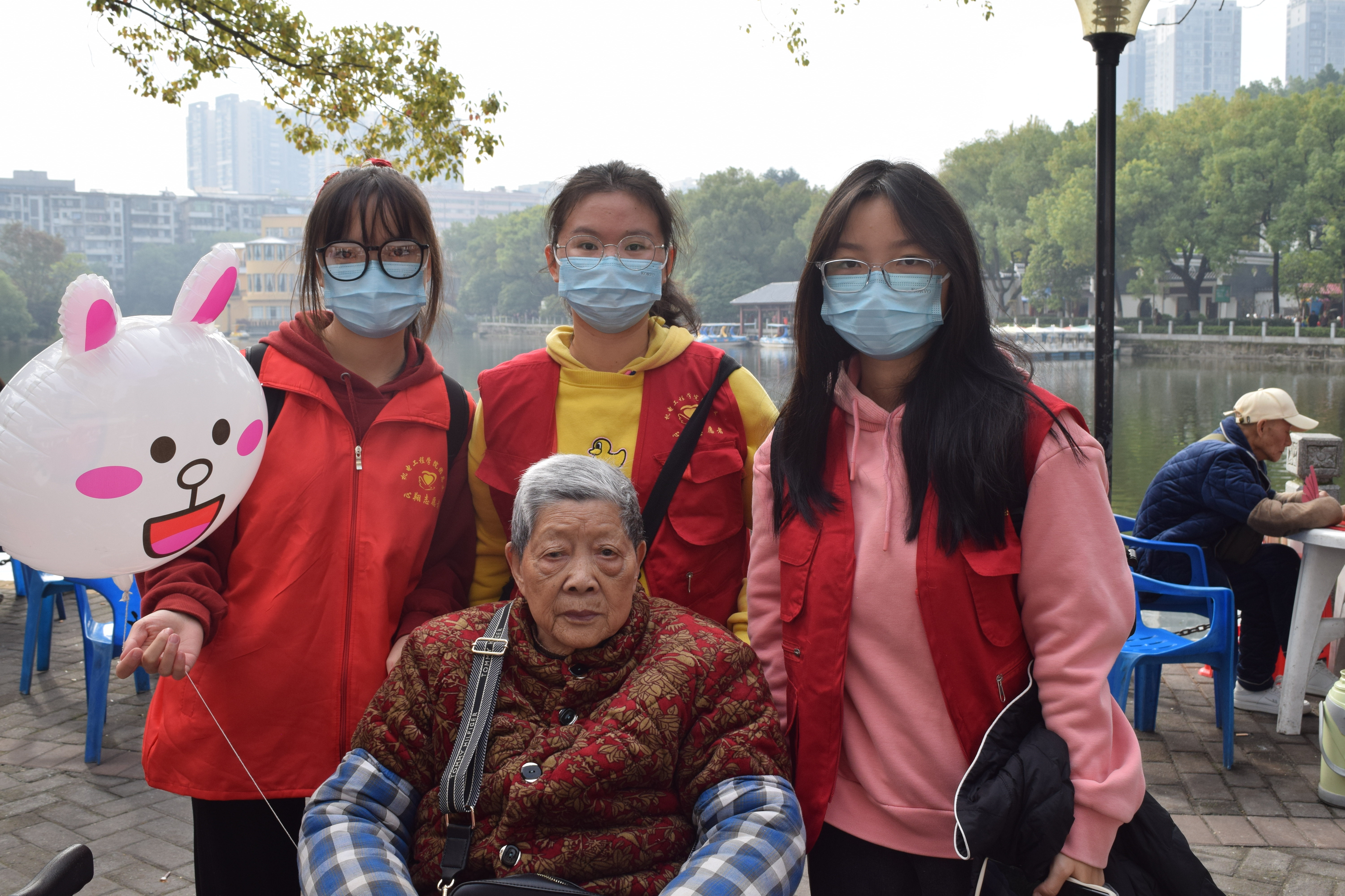接着,公园路边五颜六色的气球吸引到了一些“老小孩”的注意,因此,我院志愿者们纷纷在路上给老人们买起了气球,掀起了一波“气球潮”。气球绑在轮椅上,随着风飘着,引起了公园里的其他人的注目,有的阿姨在路上直夸志愿者们好棒,同时竖起他们的大拇指为志愿者们点赞。