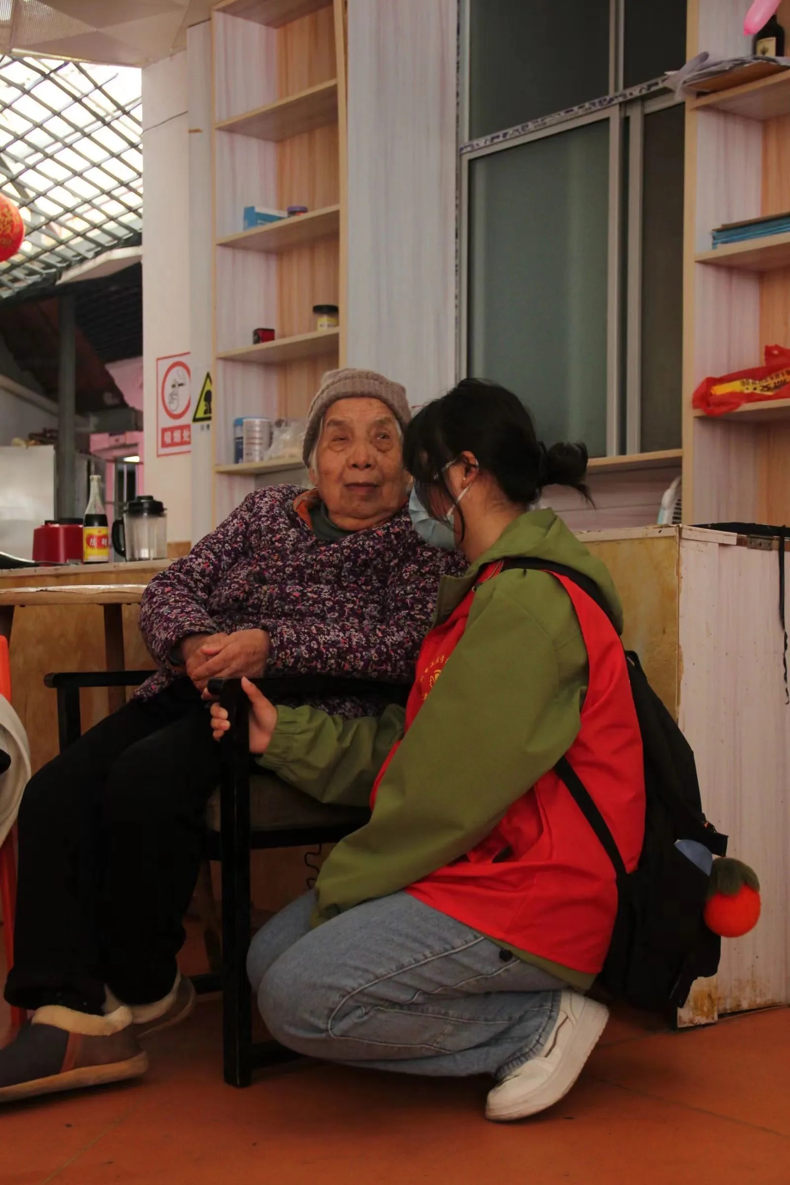 岳屏公园观赏之行结束后,我院志愿者们带老人回到了敬老院,给老人们分享带去的小零食,水果和牛奶,和他们继续聊家常,听着他们曾经的故事,顺便再叮嘱他们要合理调节日常饮食,保持积极的情绪。