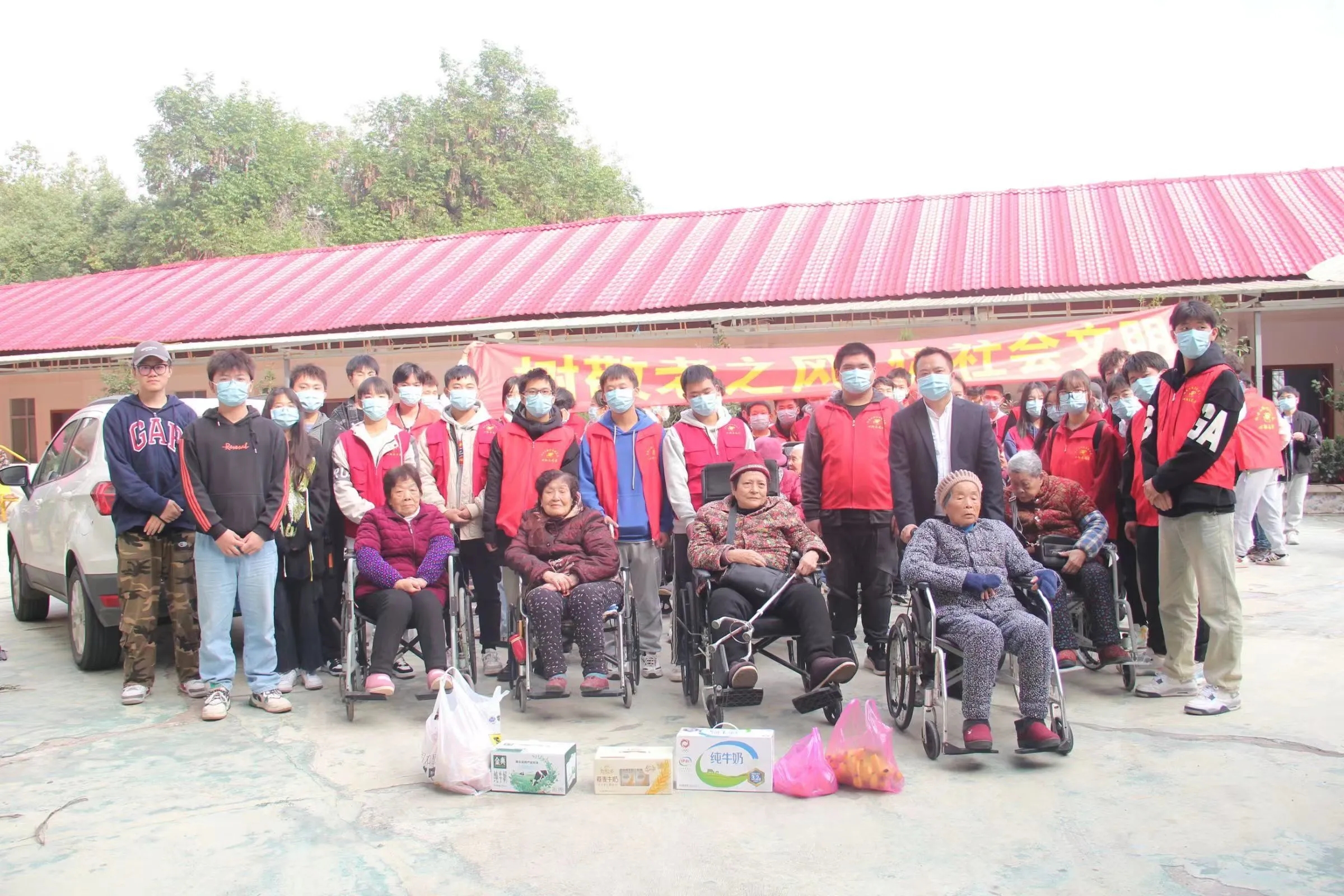 天刚蒙蒙亮,我院志愿者们迎着温暖的风,踏着轻快的脚步,准备好了慰问品与关心出发了。在路上,志愿者们多少显得有些紧张,不知道如何跟这些素未谋面的爷爷奶奶交流。但是当他们到达敬老院时,没有尴尬也没有拘谨,一切的一切都在老人家们和蔼的笑容中融化。