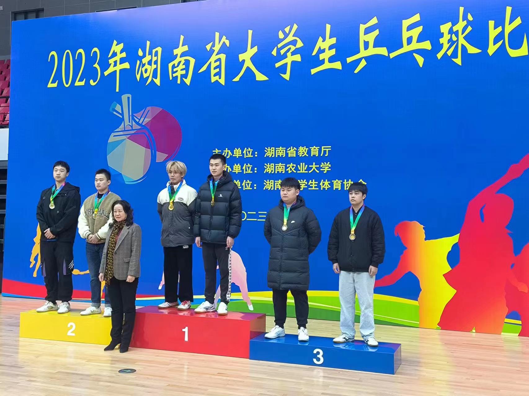 本网讯(通讯员 赵红深 摄影 李水华)12月6-12日,由湖南省教育厅主办的2023年湖南省大学生乒乓球比赛在湖南农业大学举行。我校乒乓球队在教练高晶、邓科、熊阿凤老师的指导下,谭俭、胡钊、彭小兵、邓林潇和蔡宇鑫获学院甲组男团冠军;谭俭获学院甲组男单冠军;谭俭、胡钊组合获学院甲组男双冠军;胡钊、王鑫组合获学院甲组混双第七名,宋雅婷获学院甲组女子单打第七。