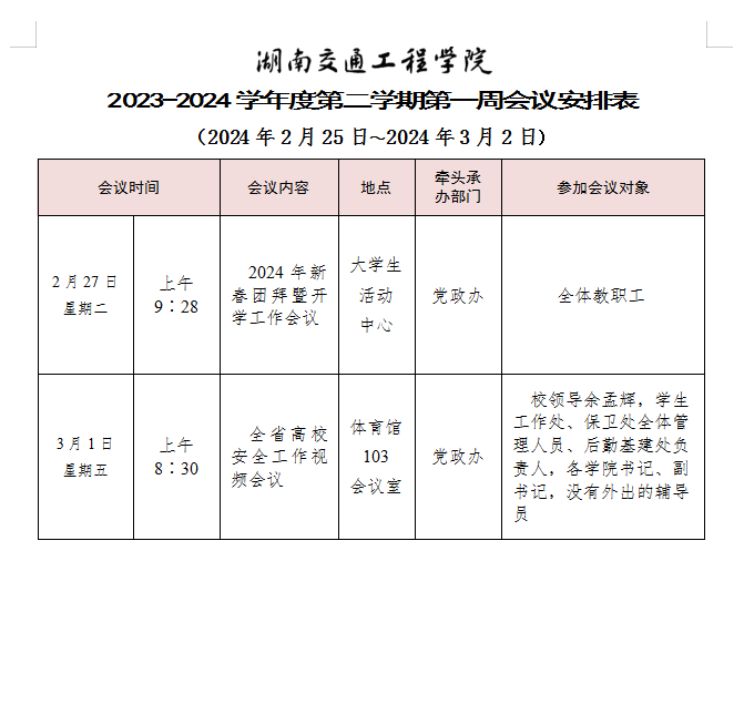 18新利在线登陆 2023-2024学年度第二学期第一周会议安排表
