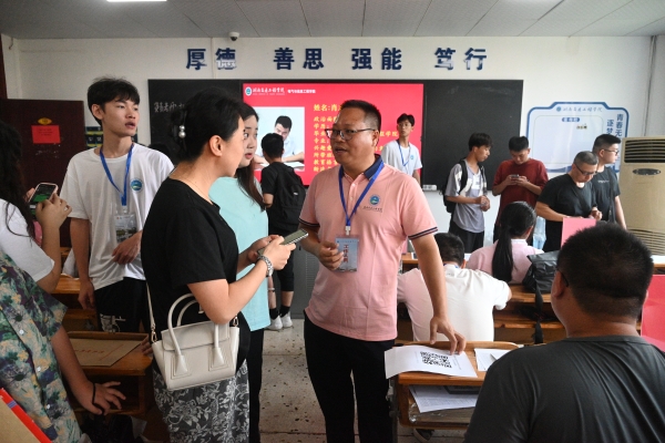 董事长刘福生、执行校长刘杰、名誉校长刘平娥、常务副校长彭文武、党委副书记冯良贵、纪委书记刘毅、副校长余孟辉等校领导及相关部门负责人先后到报到现场检查迎新工作,向新同学们送上亲切的问候并表示热烈的欢迎。在校大门入口处,校领导询问保卫处负责人新生报到车辆引导和交通秩序维护,确保校园安全;在视察各个学院的迎新展台工作情况时,听取各学院负责人与学生志愿者对迎新工作的介绍,提出相关工作建议,并对现场工作人员及志愿者致以慰问。