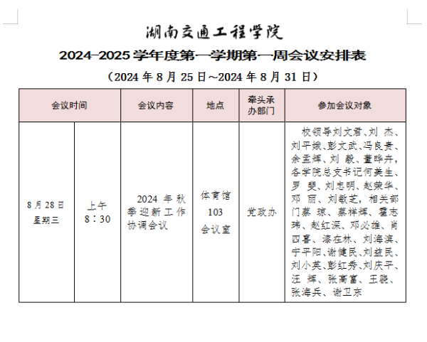 18新利在线登陆 2024-2025学年度第一学期第一周会议安排表