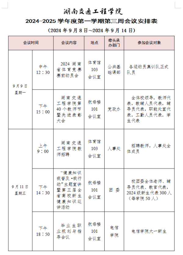 18新利在线登陆 2024-2025学年度第一学期第三周会议安排表