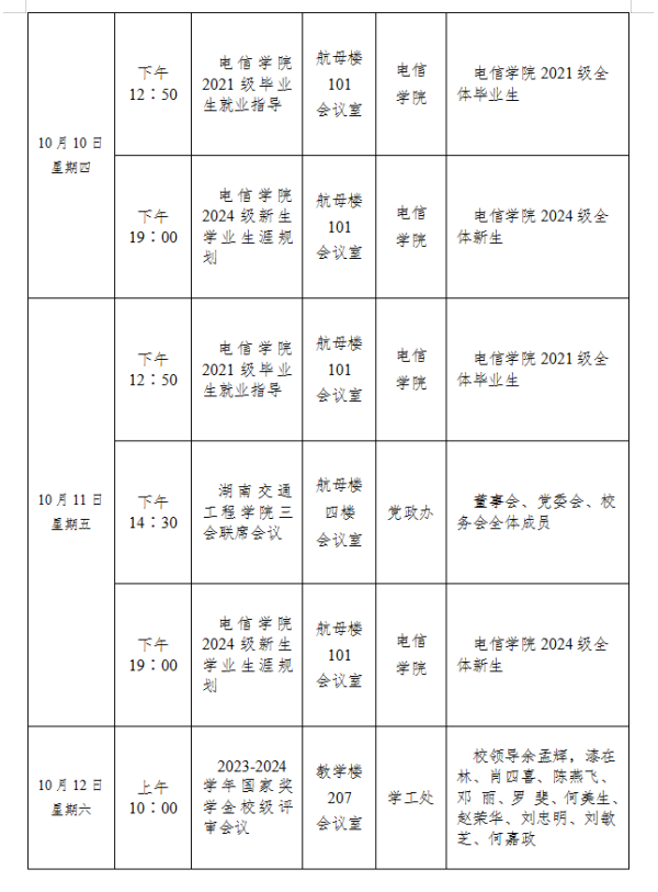 18新利在线登陆 2024-2025学年度第一学期第六周会议安排表