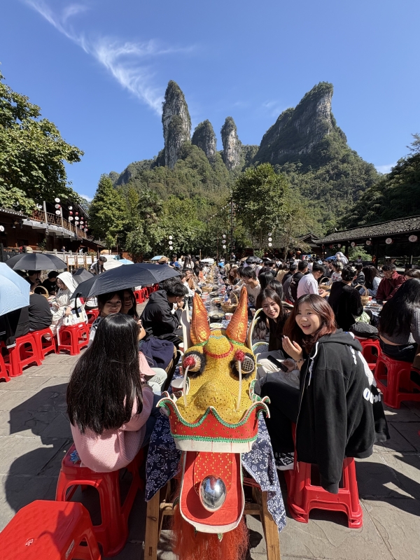 ▲采风师生品尝苗族长龙宴