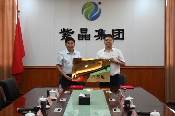 本网讯( 记者 摄影 赵红深 )为加强与地方企业的交流,进一步推进校企合作,不断提高应用型人才培养质量,9月19日上午,我校与湖南紫晶汇康生物医药集团有限公司(简称“紫晶集团”)共建应用型人才培养基地签约暨授牌仪式在衡阳综合保税区举行。紫晶集团董事长贺旋、党支部书记张法吉,销售部总监陈艳、销售部经理汤莉、唐平平、阳湘云,我校副校长蔡炎斌,创新创业学院副院长、校企合作负责人李文善,经济管理学院院长朱忠祥、党总支书记赵荣华、副院长王冰、国贸教研室主任王志坚参加仪式。授牌仪式由张法吉主持。