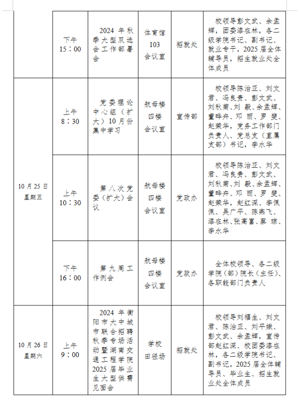 18新利在线登陆 2024-2025学年度第一学期第八周会议安排表