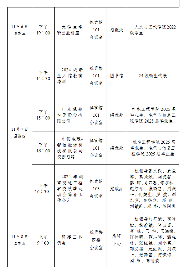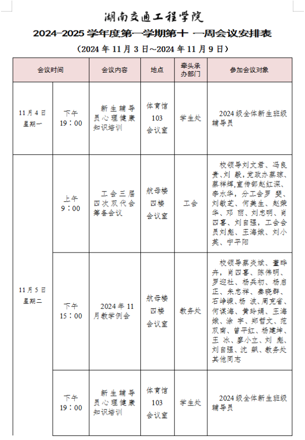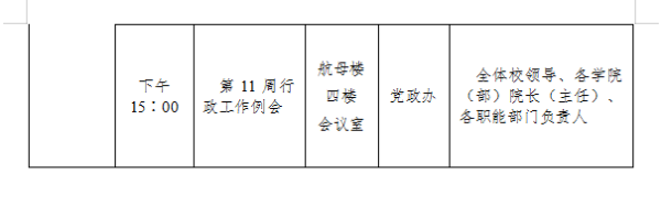 18新利在线登陆 2024-2025学年度第一学期第十一周会议安排表