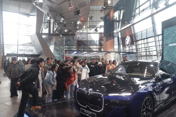 在宝马世界主展厅,陈列着宝马各系列车型,涵盖豪华轿车、高性能跑车、纯电动车及混合动力车等,最新电动车型BMW iX尤为引人注目,其出色的续航和智能驾驶辅助系统引发教师们的高度关注。教师们与宝马资深员工朱拜尔・阿拉姆(Jubair Alam)先生深入交流,朱拜尔先生详细介绍了宝马当下在新能源领域的积极布局,包括全力推进电动车型研发与市场推广,计划在未来实现电动车销量显著增长,同时加紧混合动力车型研发以满足多元市场需求。