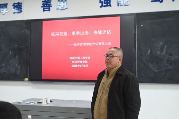 本网讯(通讯员 赵红深 摄影 何心怡)3月6日中午,经济管理学院召开决战决胜本科教学工作合格评估冲刺誓师大会。常务副校长彭文武出席会议并讲话,院长朱忠祥、副院长王冰、党总支书记赵荣华、副书记张敬会及学院全体教职工参加会议。朱忠祥主持。