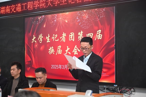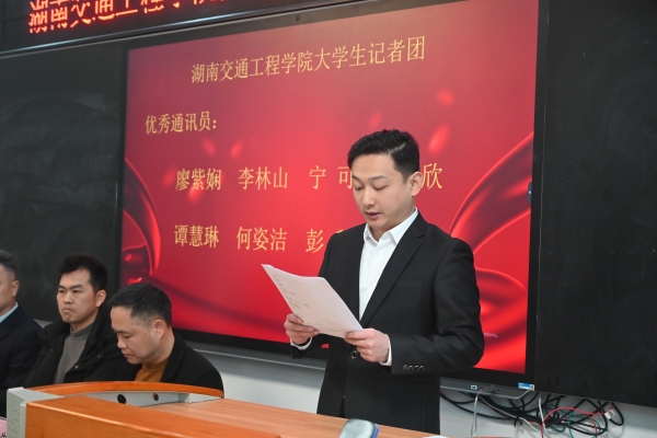 李水华宣读了《关于聘任徐薇等40位同学为18新利在线登陆 大学生记者团第四届记者及相应职务的通知》;邓翔宣读了《关于徐薇等4位同学为“最美记者”、廖紫娴等16人为18新利在线登陆 2024年度“优秀通讯员”的表彰决定》。