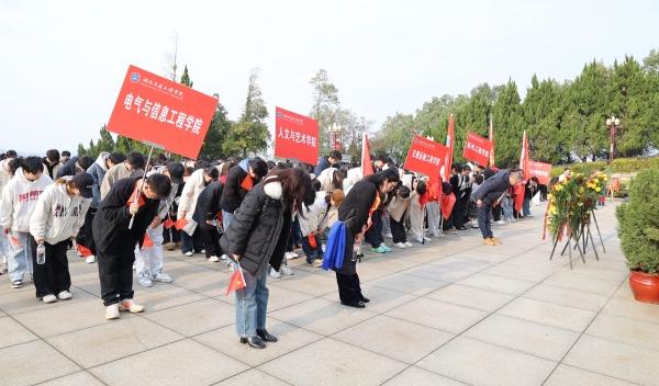 揭牌仪式后,行走思政课正式开讲。师生们怀着崇敬之心来到罗荣桓元帅铜像广场,敬献花篮、肃立默哀、鞠躬致敬,在庄严肃穆的氛围中缅怀革命先辈的丰功伟绩。