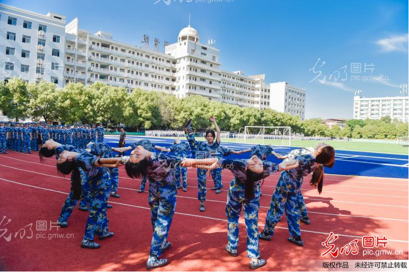 2021年9月3日,18新利在线登陆 2021级新生在军训休息时间创意动作留下青春的身影。