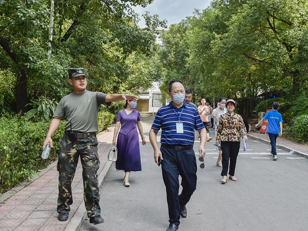 本网讯(记者 摄影 李建华)为进一步推动校园环境卫生建设,落实落细疫情防控措施,营造一个优美、整洁、舒适的学习和生活环境,确保师生身心健康,9月8月上午,副校长余孟辉带领学工处和新生班辅导员对我校各班级卫生责任区卫生进行巡察督查。